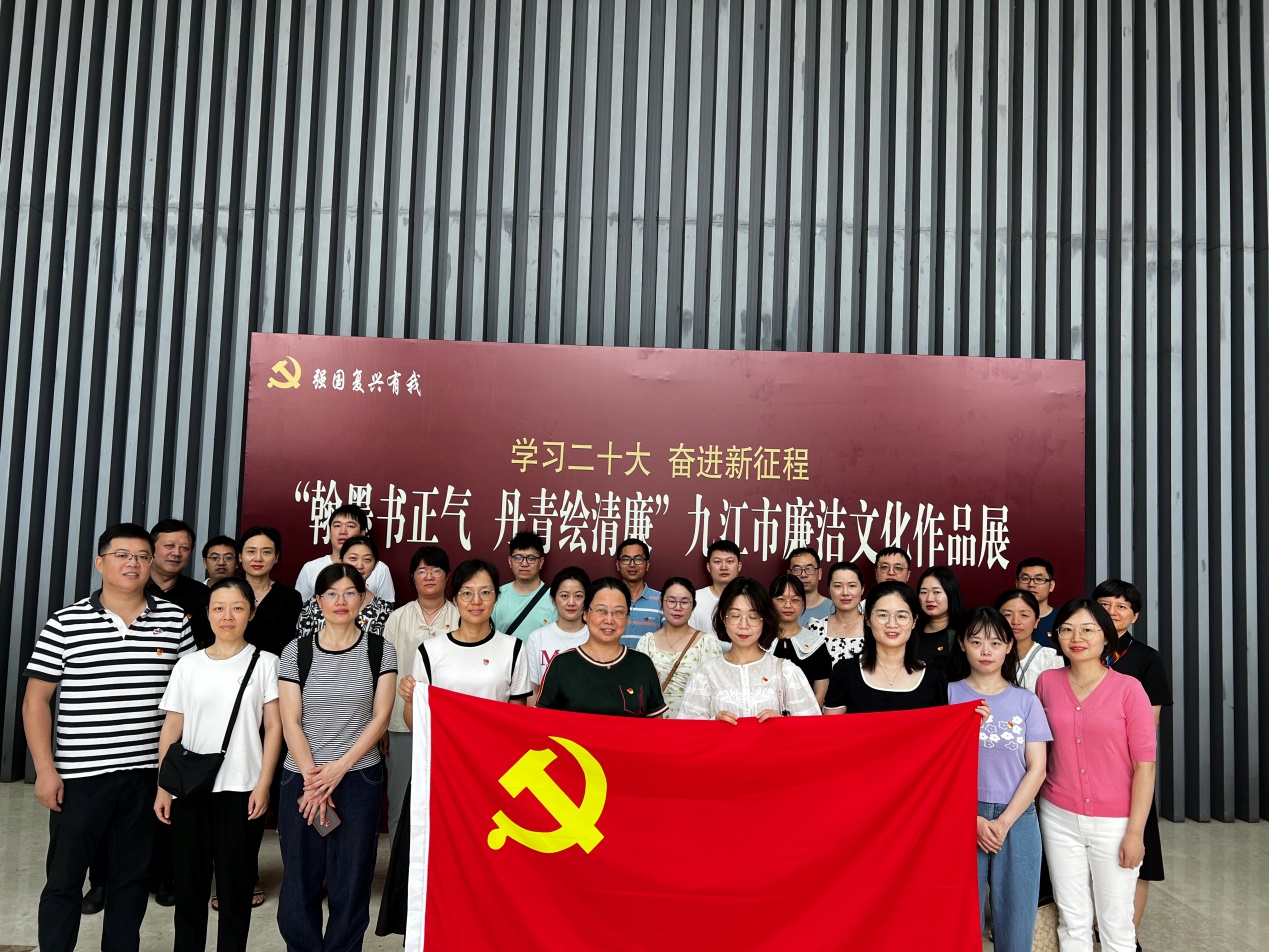 为深入学习贯彻习近平新时代中国特色社会主义思想和党的二十大精神,进一步加强公司廉洁文化建设,营造风清气正、廉洁从教、崇尚廉洁的浓厚氛围,7月4日上午,公司党总支组织全体党员同志前往市民服务中心参观由市委宣传部、市纪委市监委、市直机关工委、市文联、市机关事务管理局联合举办的“翰墨书正气 丹青绘清廉”九江市廉洁文化作品展。