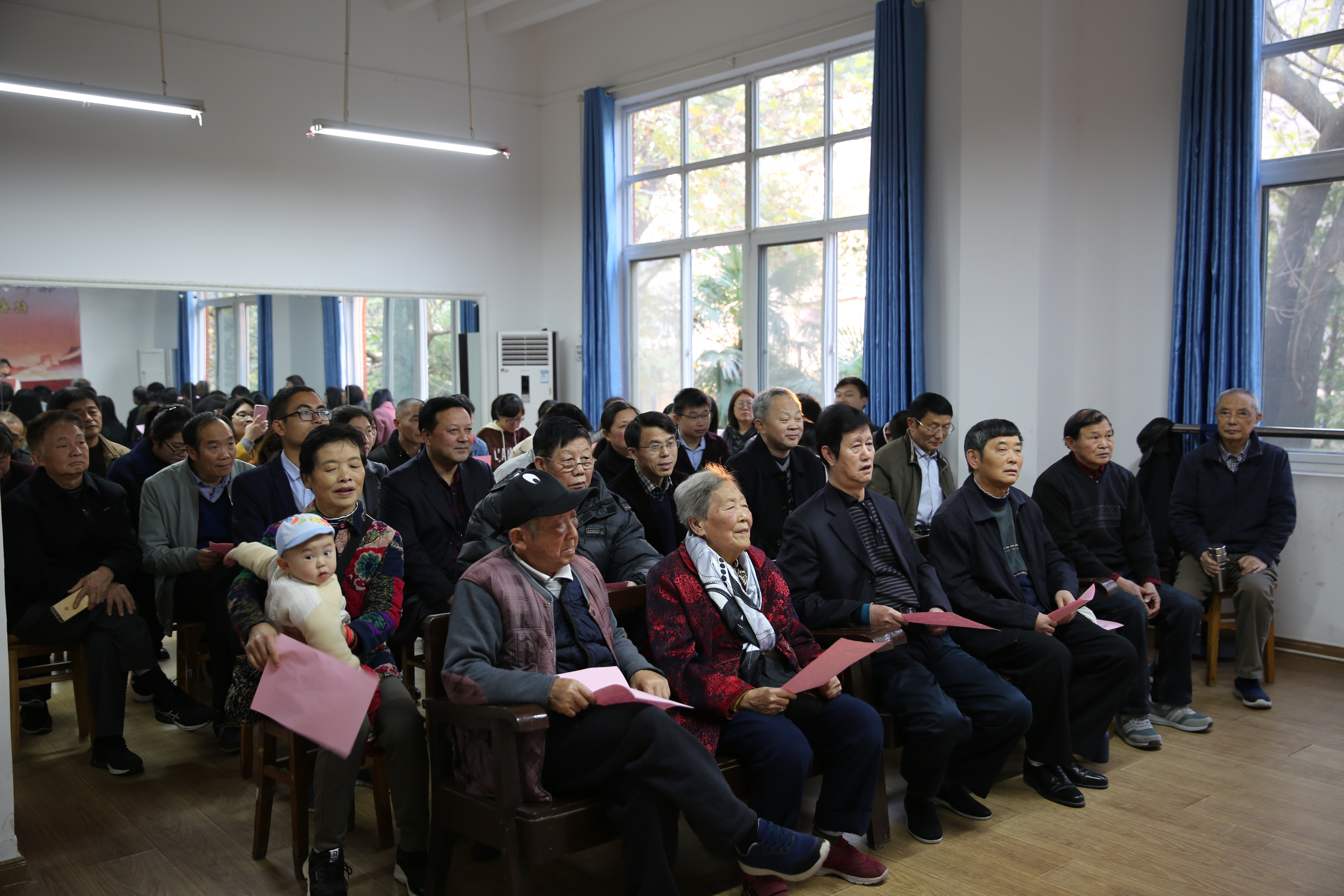 在我们伟大祖国迎来改革开放四十周年之际,为回顾我国改革开放取得的伟大成就,歌颂我们党领导中国人民进行改革开放和现代化建设取得的光辉业绩,11月27日下午4:30,校工会与公司在本校东校区红楼工会职工俱乐部联合举办了以“讴歌新时代颂歌献给党”为主题的纪念改革开放40周年歌咏演唱会。校工会、公司的教职工代表及公司离退休老同志代表共六十余人参加了此次活动,由卢路和吕相宜两位青年教师担任本次演唱会的主持人,离退休党总支和公司党总支共同选送了十一个节目登台演出,参加演唱的丁良珠、陈卫东、廖剑、黄益军、杨郁、卢洪信、张家顺、杨燕、卢路、吕相宜、徐佳佳等十一位党员教师用动人的歌声、饱满的激情、优美的旋律、优秀的歌曲、良好的形象,放歌新时代,唱响主旋律,向祖国改革开放四十周年献上最美好的祝愿。
