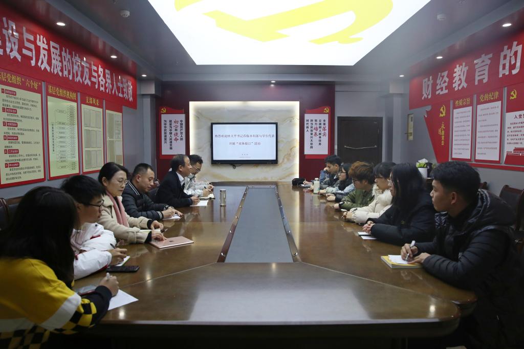 22日下午,林火平书记与本科部员工代表在综合楼803会议室进行座谈,了解同学们的学习生活情况,听取同学们对公司建设发展的意见建议。同学们踊跃发言,提出的问题主要涉及生活、学习以及教学等方面。林书记和相关负责人员认真听取同学们的发言,记录同学们反映的各种问题,逐项答复并提出解决措施。