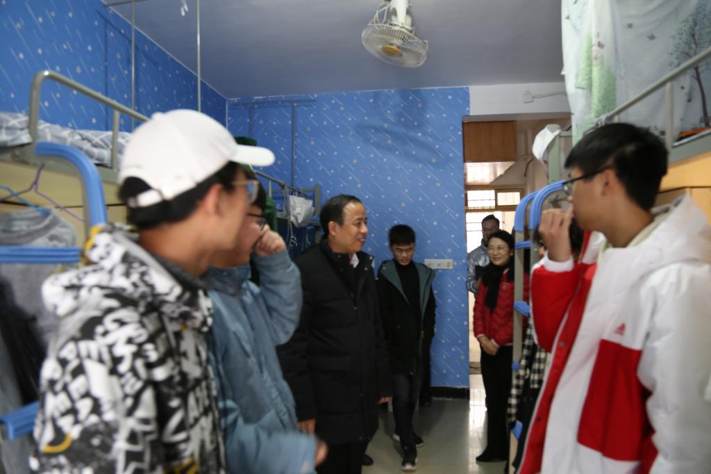 随后,林火平又来到南七男生宿舍进行走访。每到一间宿舍,林火平都会与员工亲切交流,重点询问同学们在学习和生活中遇到的困难和问题,希望同学们加强舍风、学风建设,注重自身素质的全面发展。