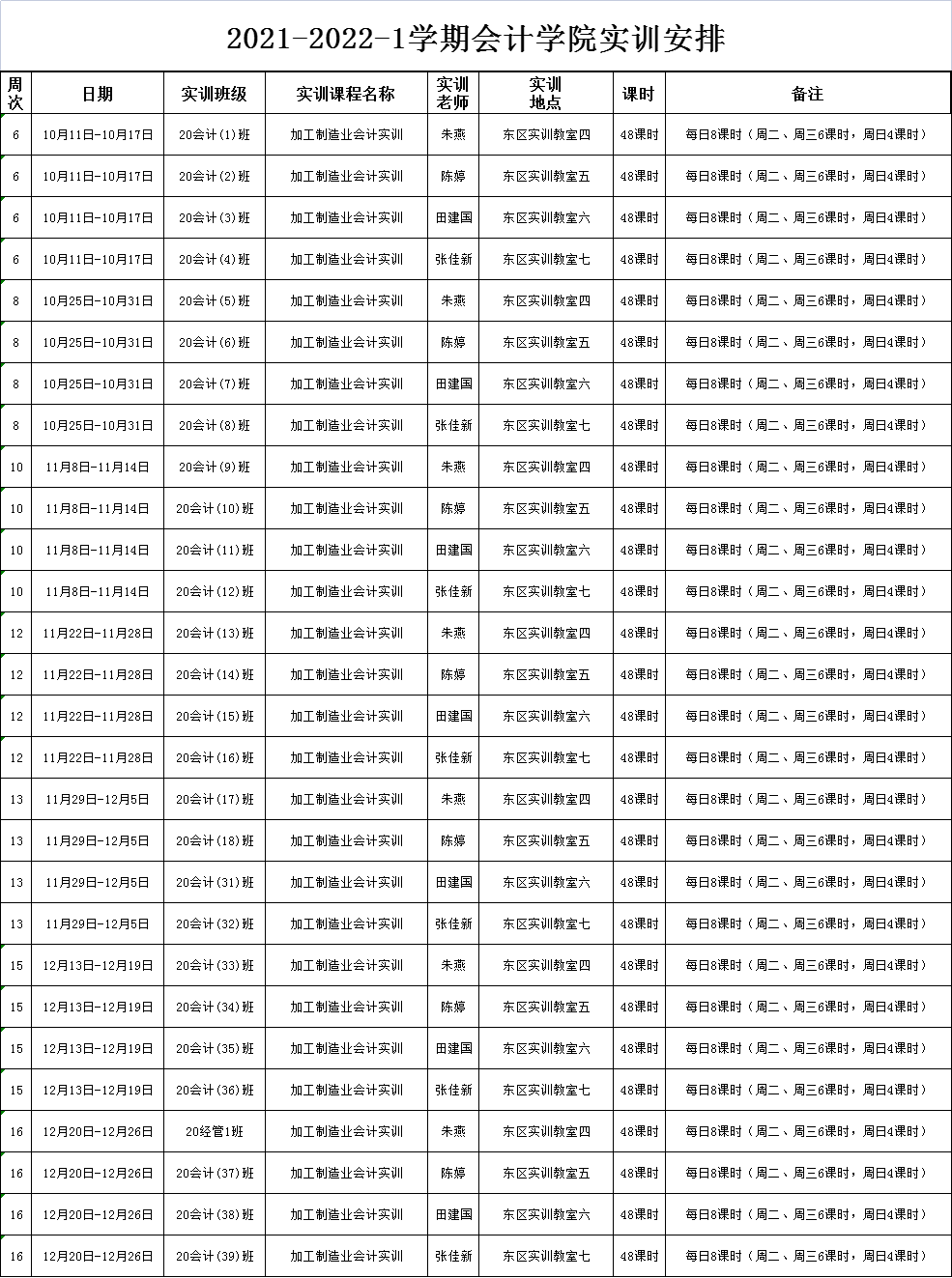 2021-2022-2学期最靠谱的十大足球平台实训安排
