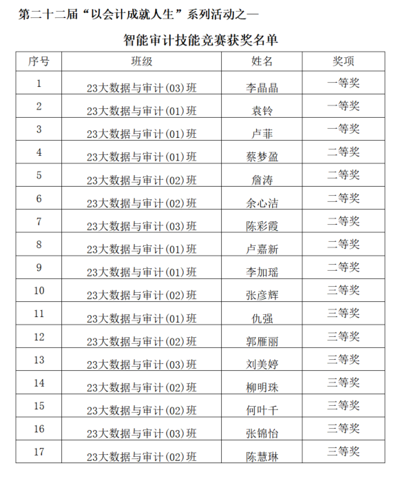 附件:智能审计竞赛获奖名单