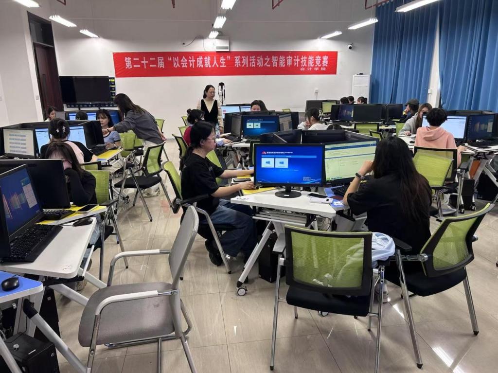 比赛现场,参赛选手们全神贯注,依托智能审计软件等工具,完成从数据采集、风险识别到审计报告生成的全流程操作。现场键盘敲击声此起彼伏,选手们时而凝神思考,时而快速操作,充分展现了扎实的专业功底和娴熟的技术应用能力。