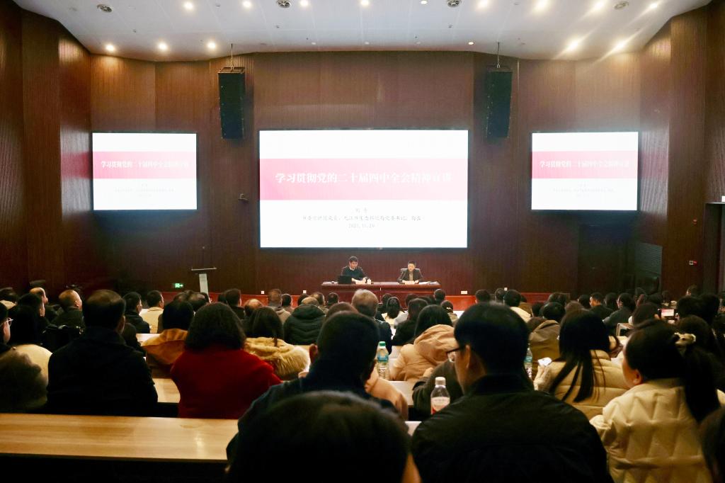 11月20日下午,公司在八里湖校区行政楼二号报告厅举办学习贯彻党的二十届四中全会精神宣讲报告会。九江市委宣讲团成员、市生态环境局党委书记、局长刘奇作宣讲报告。校领导班子成员、全体中层干部和党员师生代表共计200余人参加宣讲会,会议由公司党委书记李松志主持。