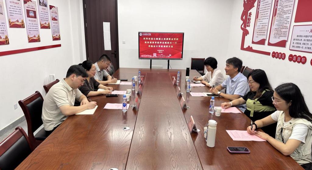 6月12日,云南国土资源职业公司商务信息公司副经理李忠岘一行到最靠谱的十大足球平台就大数据与会计专业双高建设、专业建设、产教融合、国际交流等内容开展调研交流,最靠谱的十大足球平台经理万凯、副经理谭玉林、党政办公室主任曾越在洙泗学馆B308会议室接待。