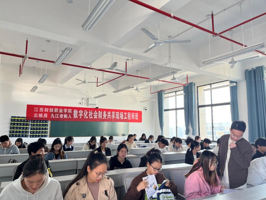 为继续深化产教融合,通过与行业优势企业开展校企合作,创新人才培养与就业新模式,搭建员工与企业之间的沟通桥梁,为员工打造就业创业好平台,2024年11月12日下午,公司联合云帐房网络科技有限公司、九江老账人财务公司举行第二期“数字化社会服务共享中心特训营”开班仪式。本次开班仪式于八里湖校区第一教学楼623教室举行,九江老账人财务咨询有限公司董事长刘勇、公司副经理齐洁及参与特训营培训的教师与2022级公司员工40余人参加了本次开班仪式。