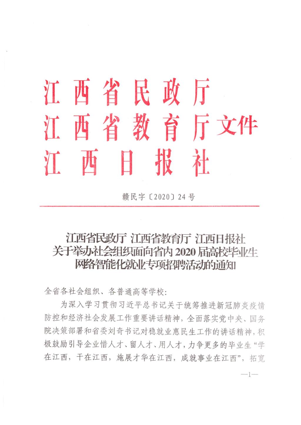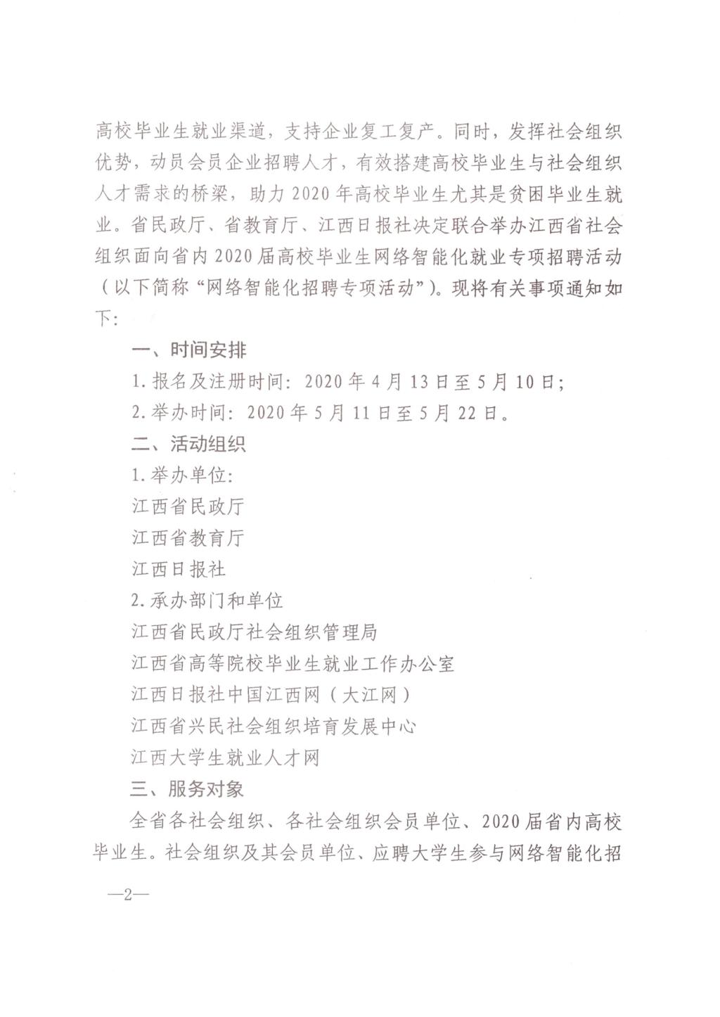 关于举办江西省开发区企业面向省内2020届高校毕业生网络智能化就业专项招聘活动的通知