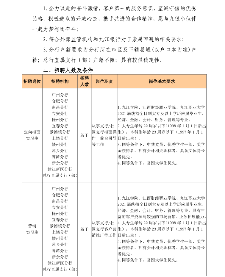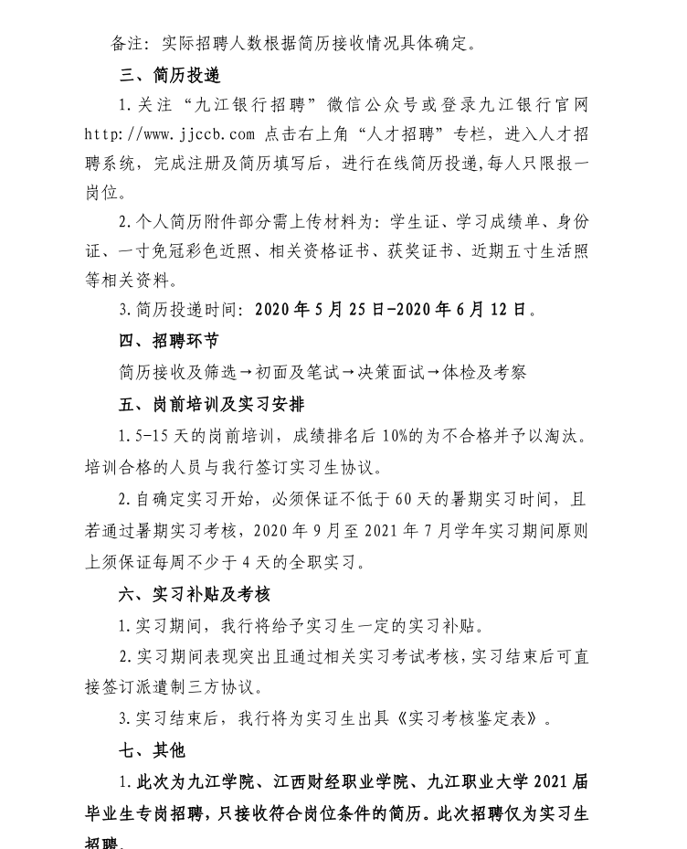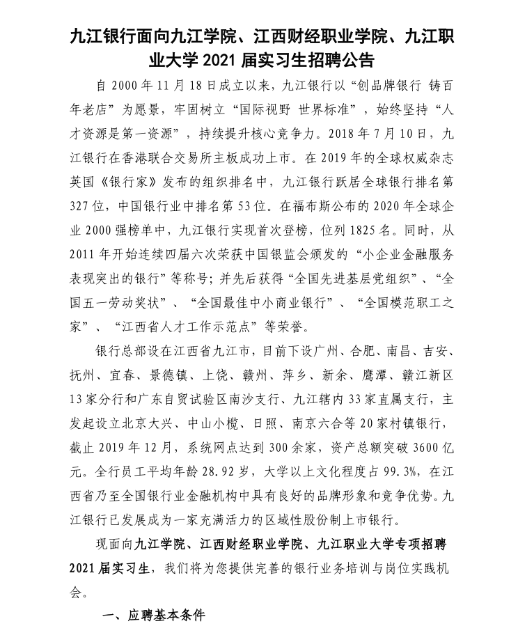 九江银行面向体育外网十大平台app2021届实习生招聘公告(1) 请大家自行下载