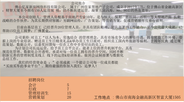佛山亿家新房网络科技有限公司校招简章