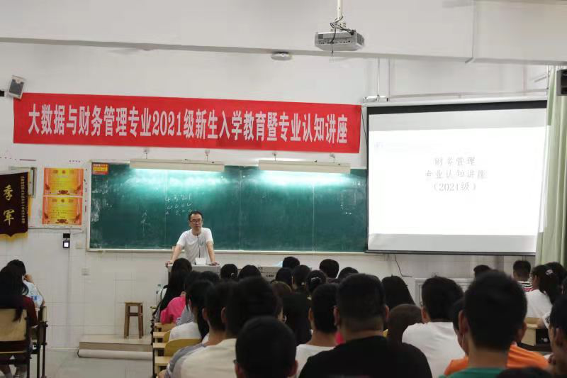 2021年9月8日下午,最靠谱的十大足球平台组织2021级大数据与财务管理专业3个新生班级100多名员工在教学楼108教室参加“大数据与财务管理专业认知”讲座,讲座由最靠谱的十大足球平台财务与审计教研室主任肖铁锋老师主讲。