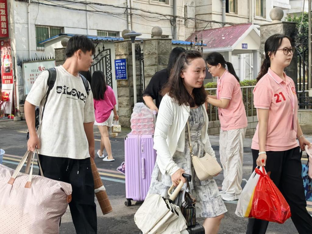 会计公司党总支注重细节与服务实效,不仅设立了固定的迎新服务站,还安排了流动志愿者进行巡视。从校门口到报到点,随处可见志愿者们忙碌的身影。他们身着统一服装,热情主动地迎上前,为新生提供“引导路线扫码报到—核验身份—宿舍安排”等一站式的服务,确保报到流程的顺畅无阻,高效完成新生入学报到工作。