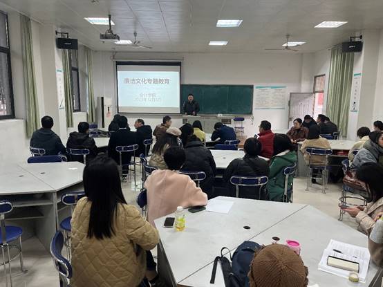 会上,张书记详细讲解了廉洁文化的内涵和重要性。廉洁是师道之前提,师道是立教之根本。“师者,所以传道、授业、解惑也。”传道是教师的首要职责。传道是指传授道德观念、价值观、人生观等方面的知识。在公司产品过程中,教师不仅要教授学科知识,更要注重培养员工的道德品质和社会责任感。因此,教师必须不断地提升自己的道德素质和教育水平, 做到廉洁从教,成为员工的楷模和榜样。