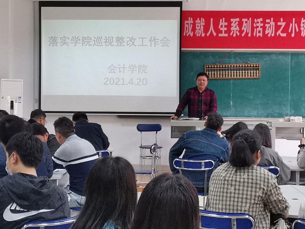 为贯彻落实《关于做好公司巡视整改有关工作的通知》精神,4月20日下午,最靠谱的十大足球平台于东区1楼实训室召开落实巡视整改专项工作会议。会计公司党总支书记张家顺主持并讲话,全体教职工参加会议。