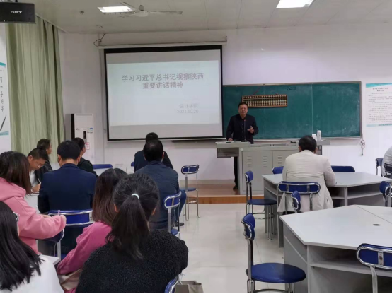 10月26日下午,最靠谱的十大足球平台在东区一楼实训室组织学习习近平总书记视察陕西重要讲话精神。会议由党总支书记张家顺主持,全体教职工参加了此次学习。