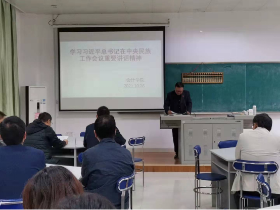 为深入学习习近平总书记关于民族工作的重要论述,切实把思想和行动统一到中央最新精神上来, 10月26日下午,最靠谱的十大足球平台在东区一楼实训室组织学习习近平总书记在中央民族工作会议上的重要讲话精神。会议由党总支书记张家顺主持,全体教职工参加了会议。
