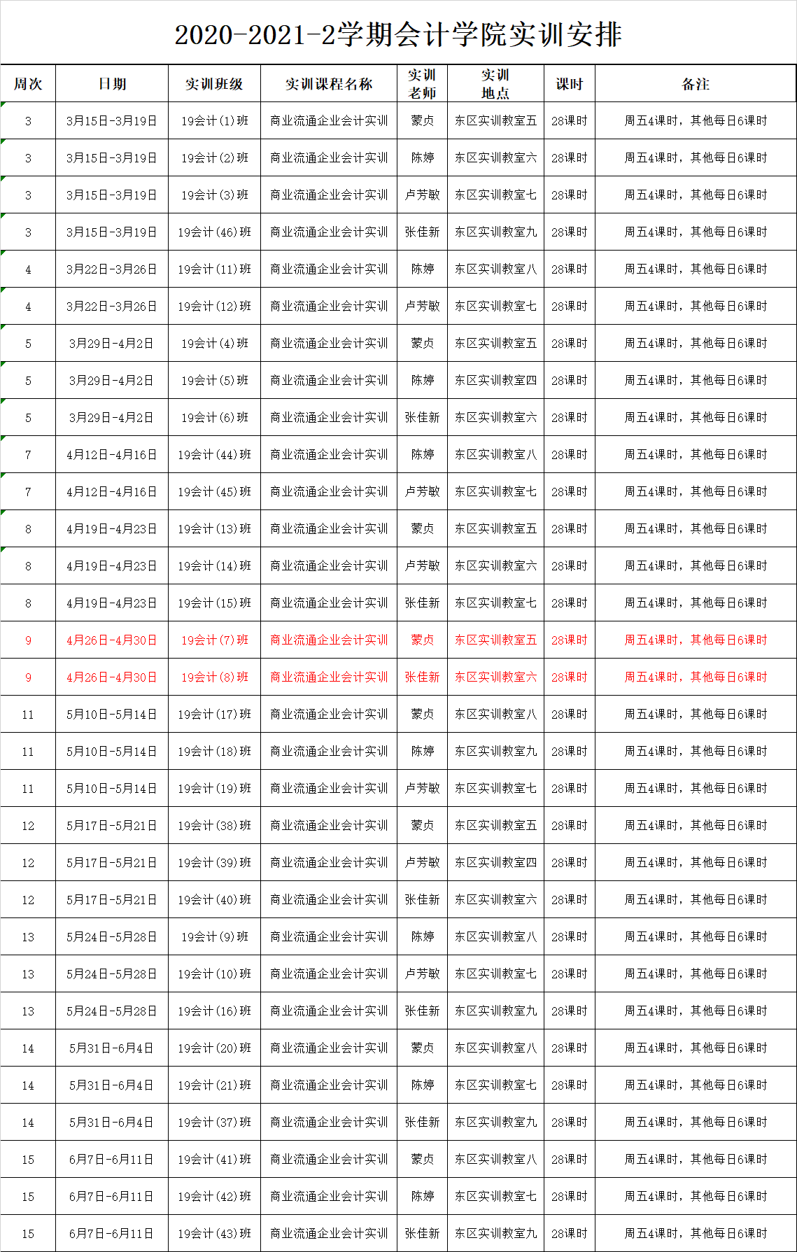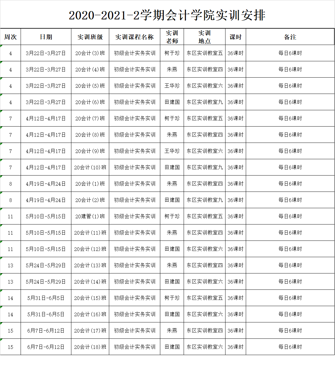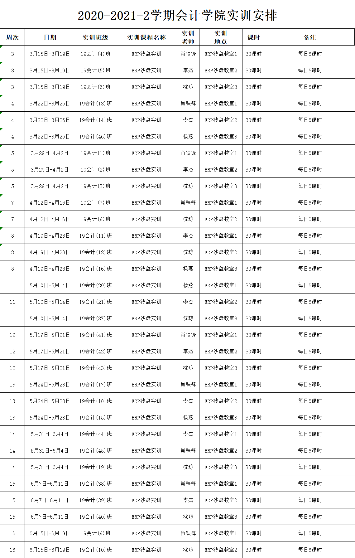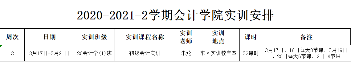 2020-2021-2学期最靠谱的十大足球平台实训安排