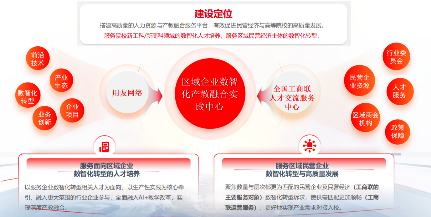 共同体立项多个产学研合作项目,围绕“智能会计师”人才需求,以“企业数智化协同创新中心”为连接,以“用友BIP数智化工程师产业公司”为载体,以“未来会计实践中心”为抓手,以“双师发展中心”为支撑,打造智能会计现场工程师公司;联合成员单位共建数智商业综合实践中心,支持学科专业集群建设,培养具备行业特色的创新型复合人才;与全国工商联人才交流服务中心共建区域企业数智化产教融合实践中心,聚力打造集人才培养、科学研究、技术创新、企业服务、员工创业等功能于一体的服务区域民营企业高质量发展的示范性人才培养高地。