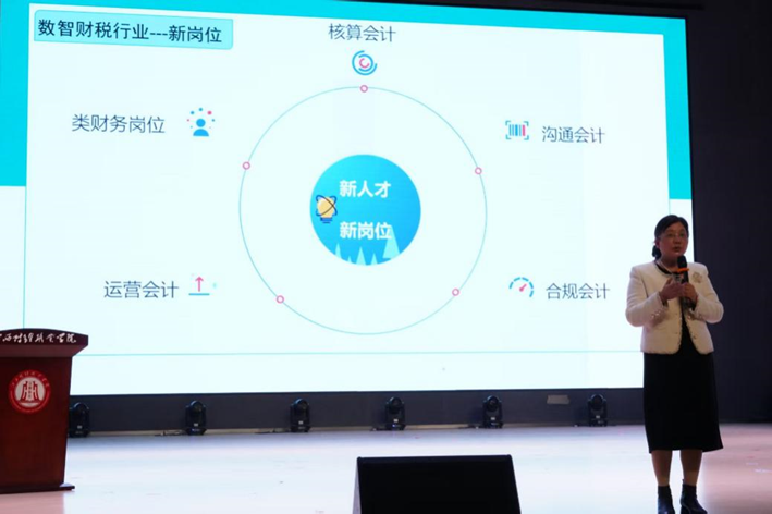 作为业财税领域深耕十余年的专家,姜慧萍以“数智化浪潮下会计人才的职业破局之路”为主题,带来干货满满的指导。首先从企业实际需求切入,深度剖析当前就业市场的“供需匹配关键点”:传统“记账型”会计岗位竞争激烈,但掌握大数据财务分析、智能财税系统操作、财税风险管控的“复合型人才”,已成为企业争抢的核心资源。结合自身服务的20余家大中型企业案例,她具体列举了新技术催生的岗位新需求 ——如“财务数据分析师”需熟练运用 Python工具,“智能财税顾问”需精通电子发票管理、税务数字化申报等,让毕业生对“数智会计岗位”有了直观认知。