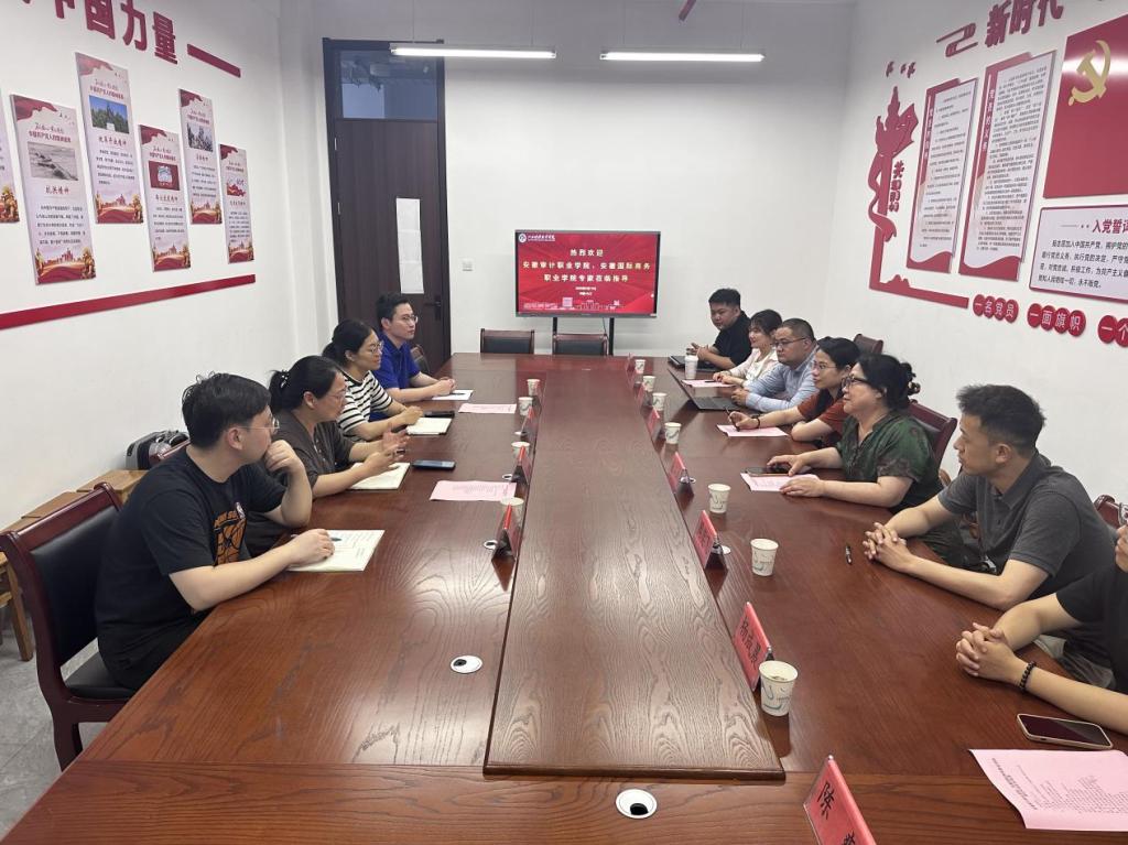 5月19日,安徽审计职业公司会计专业带头人徐庆林、安徽国际商务职业公司会计教研室主任唐韵一行到最靠谱的十大足球平台开展调研交流,双方围绕YS顾问班办学模式及成效、产学研创会计实训室建设、现场工程师项目、世界职业院校技能大赛等内容展开深入探讨。最靠谱的十大足球平台经理万凯、副经理齐洁、党政办公室主任曾越、YS项目教师代表叶晖在洙泗学馆B308会议室接待。