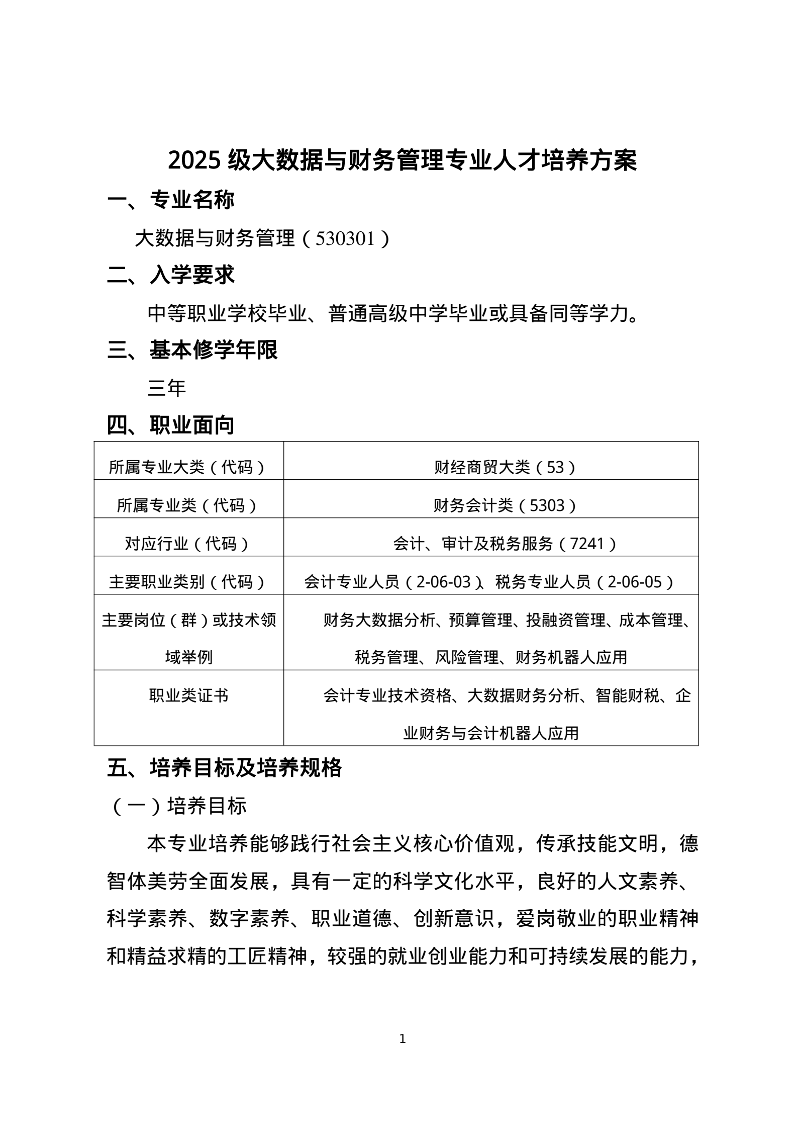 2025级大数据与会计(中高职)专业人才培养方案