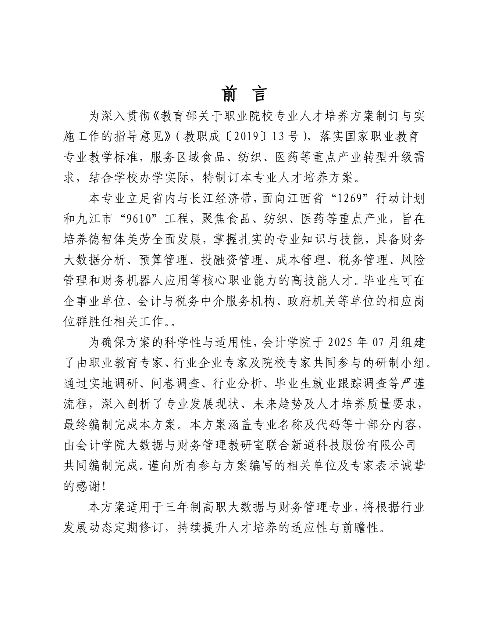 2025大数据与财务管理专业人才培养方案