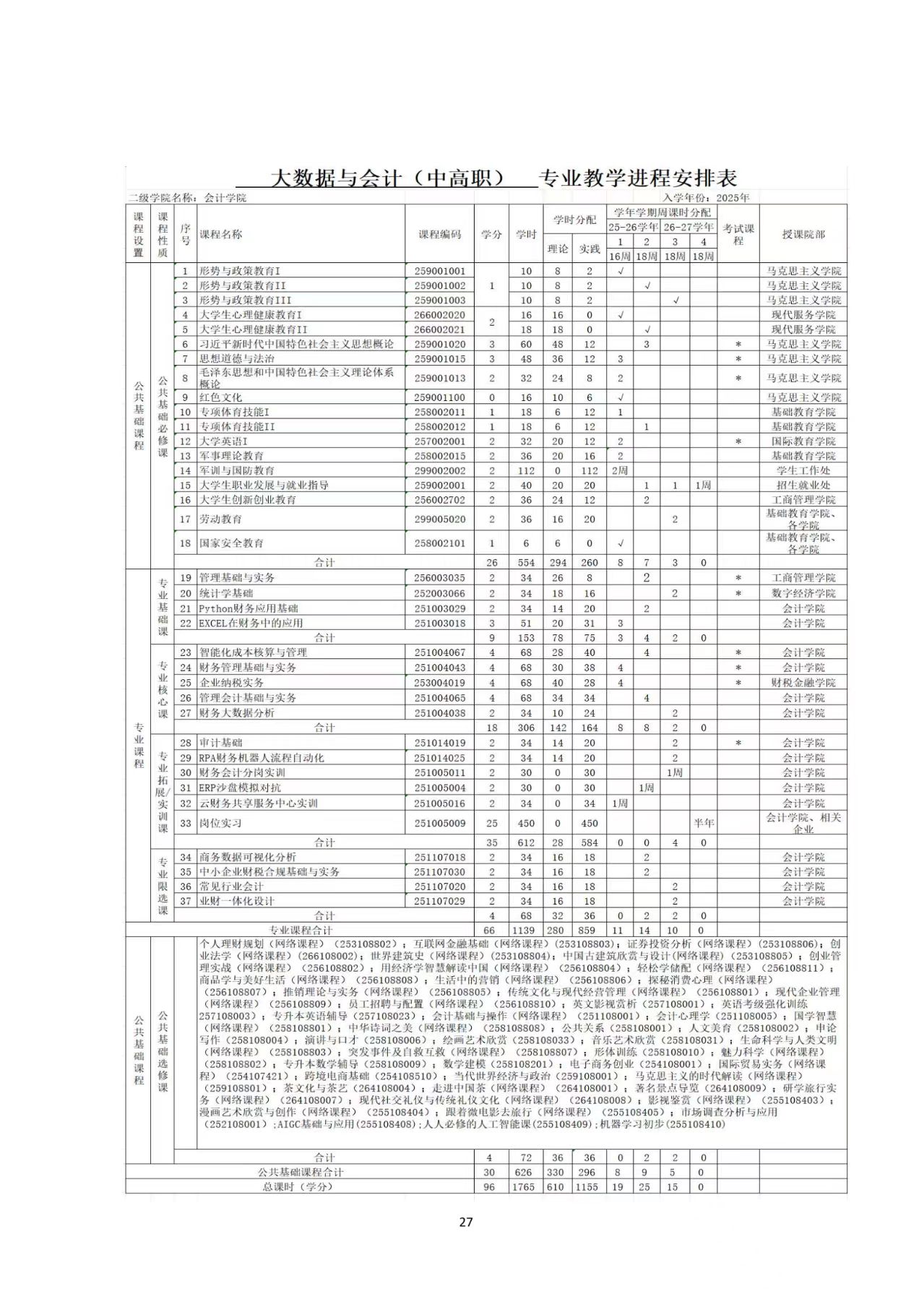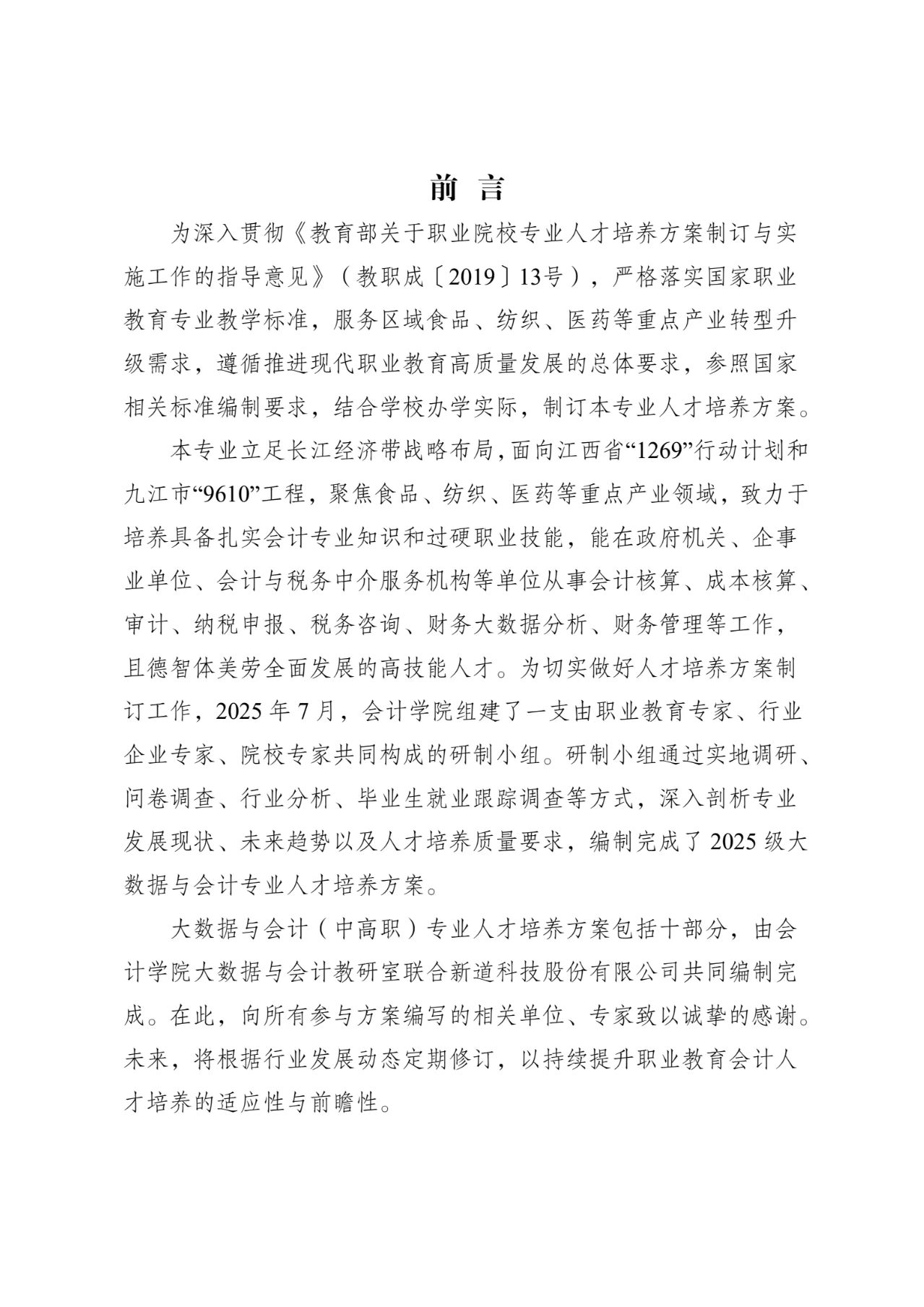 2025级大数据与会计(中外合作办学)专业人才培养方案(三年制)