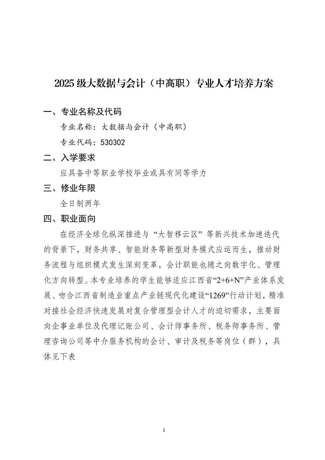 2025级大数据与会计(中高职)专业人才培养方案