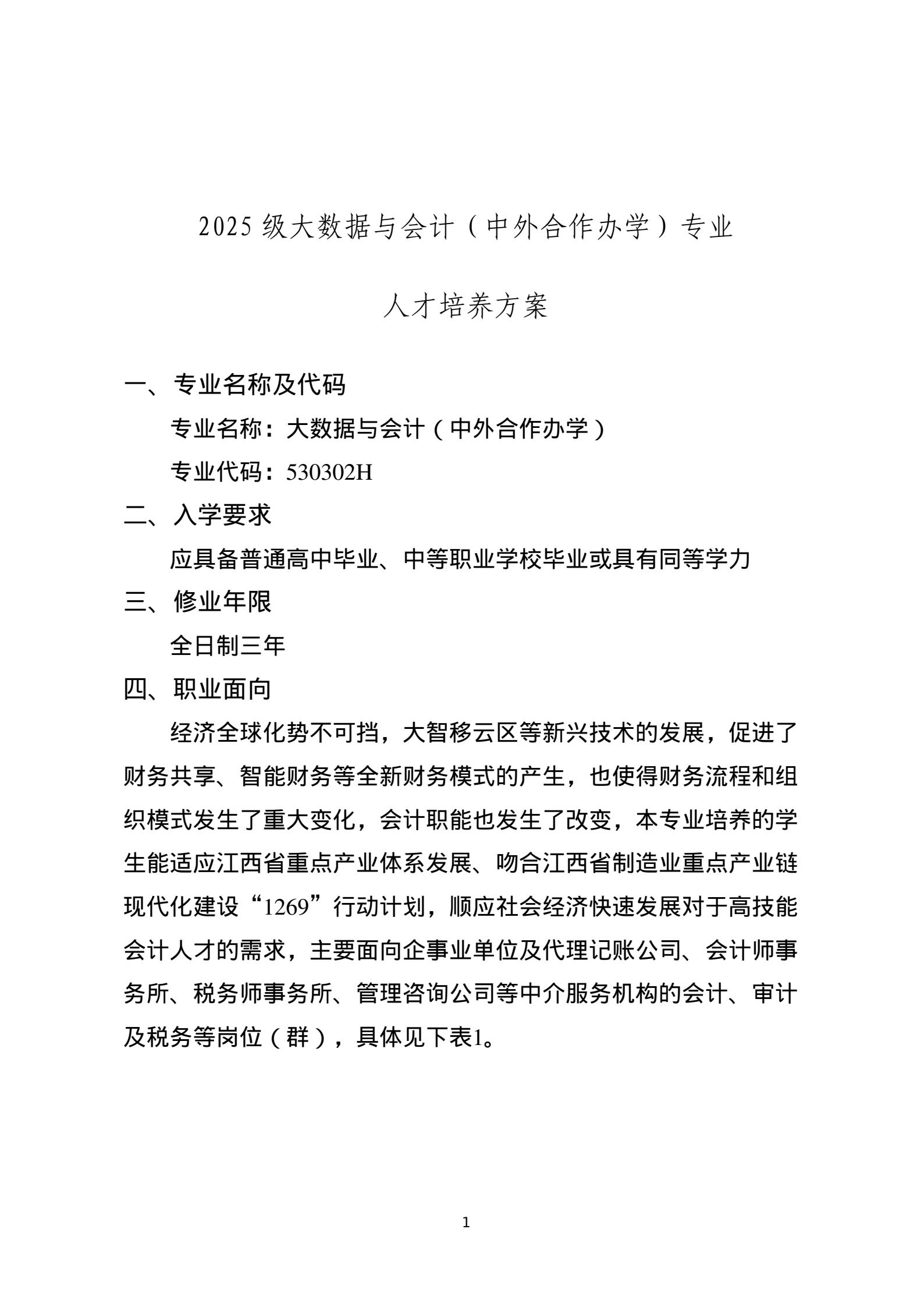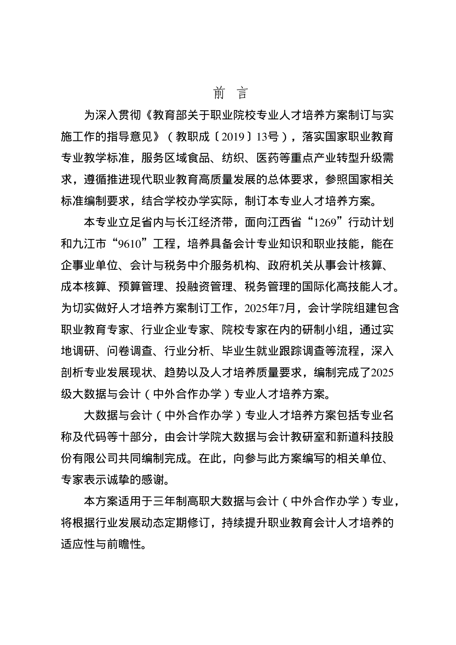 2025级大数据与会计(中外合作办学)专业人才培养方案(三年制)