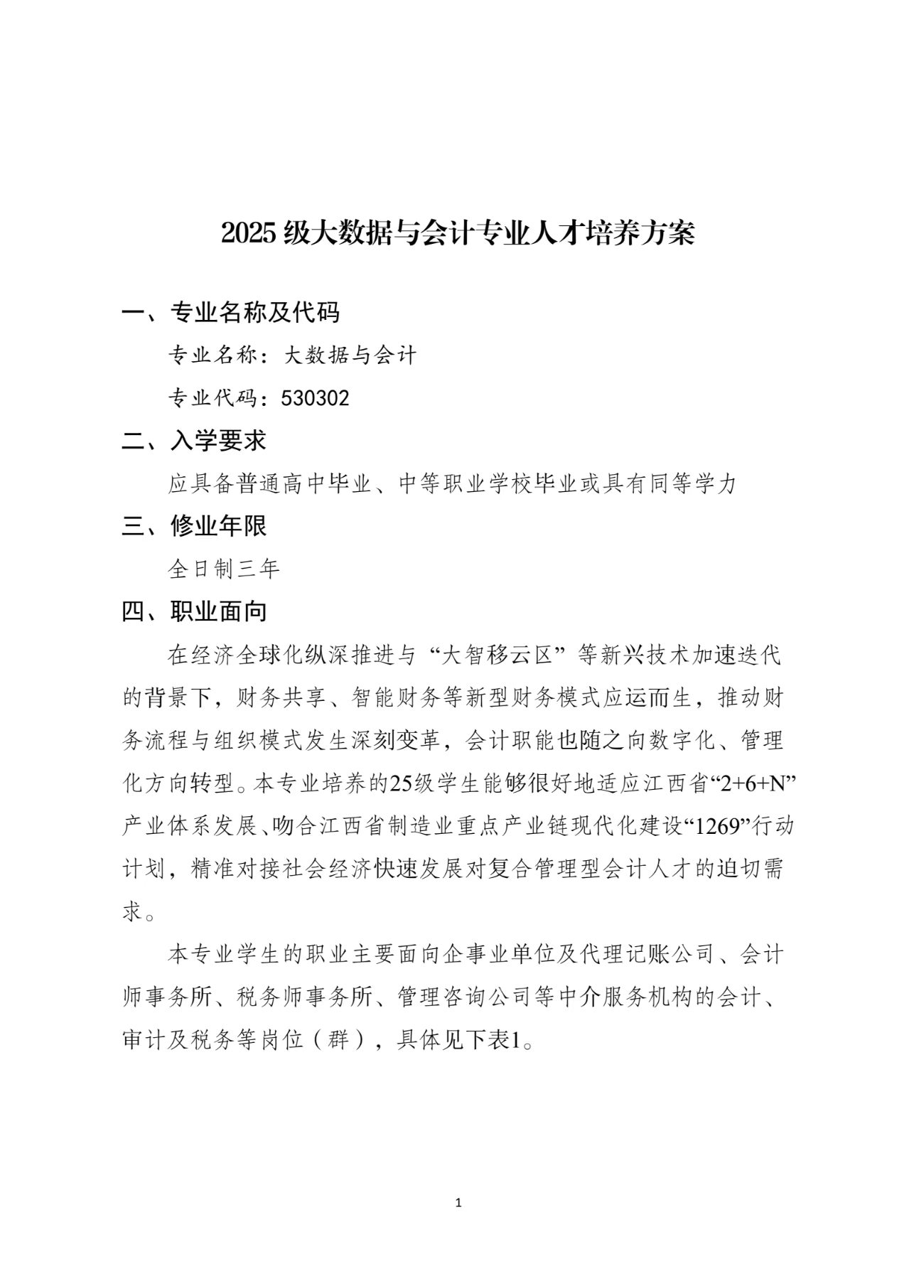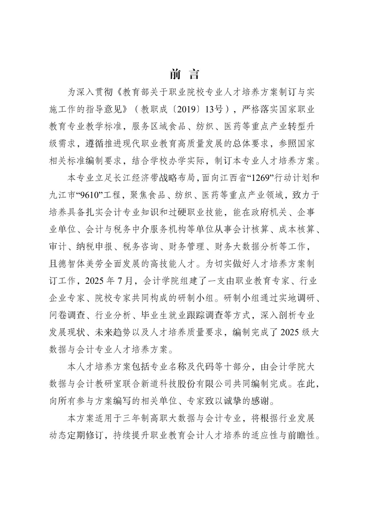 2025级大数据与会计(智能会计工程师)专业人才培养方案(三年制)