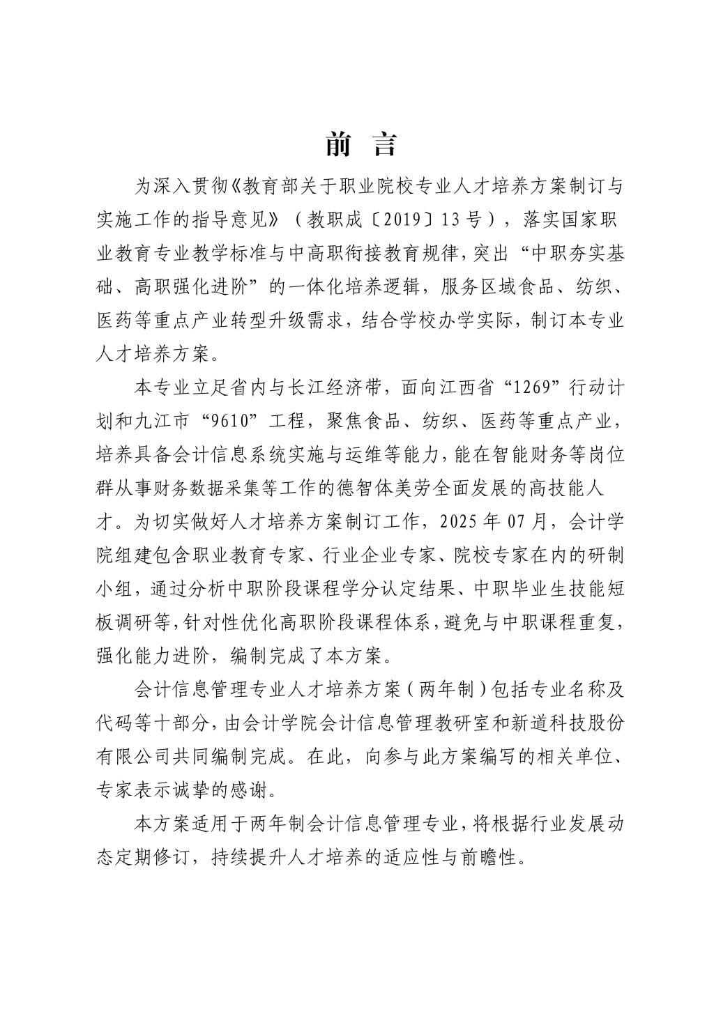 2025级会计信息管理专业人才培养方案(两年制)